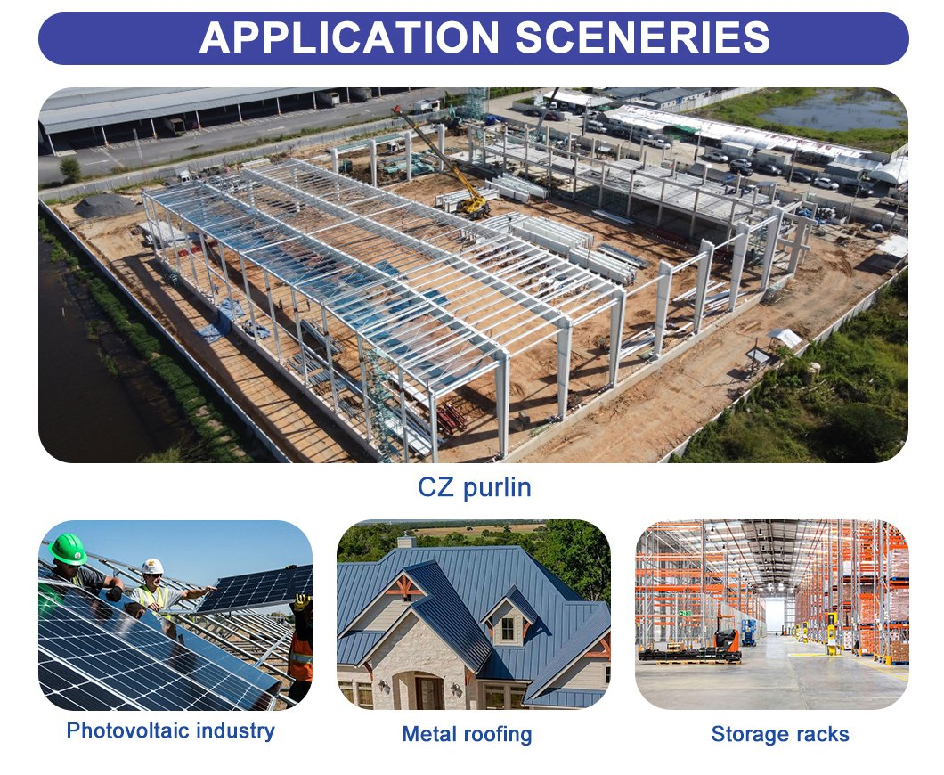 یہ سامان دو قسم کے purlins پیدا کر سکتا ہے، C اور Z۔ جہتی پیرامیٹرز ایک حد کے اندر طے کیے گئے ہیں، اور دونوں کے لیے موٹائی 1.5-3 ملی میٹر ہے۔ خاص طور پر:
