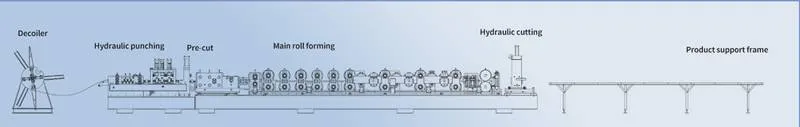پری کٹنگ سسٹم سے لیس (اختیاری پوسٹ کٹنگ کے ساتھ)؛ مختلف سائز کے اوزار تبدیل کرنے کی ضرورت نہیں؛ purlin ویب اور flanges پر کسی بھی پوزیشن پر مکے بنائے جا سکتے ہیں؛ ایمبوسنگ اور لوگو کندہ کاری کی حمایت کرتا ہے۔